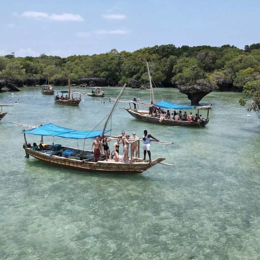 Visit pristine white sandbanks, swim and snorkel in crystal-clear waters, and explore colorful coral gardens and tropical marine life. Discover Kwale Island, with its natural green lagoon and mangrove forests, and climb a giant baobab tree for panoramic views.